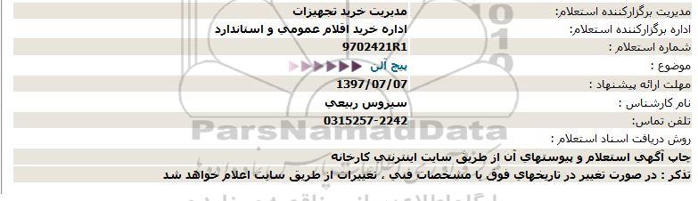 اداره برگزارکننده استعلام: اداره خرید اقلام عمومی و استاندارد