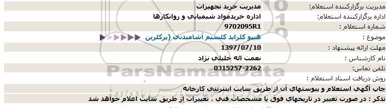 اداره برگزارکننده استعلام: اداره خریدمواد شیمیایی و روانكارها