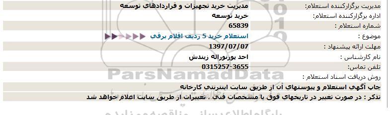 استعلام خرید 5 ردیف اقلام برقی , استعلام خرید 5 ردیف اقلام برقی