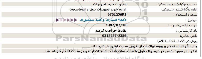 اداره برگزارکننده استعلام: اداره خرید تجهیزات برق و اتوماسیون