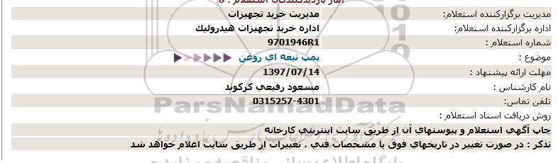 اداره برگزارکننده استعلام: اداره خريد تجهيزات هيدروليک