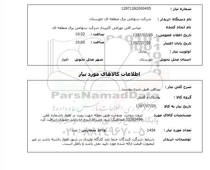 نام دستگاه خریدار: شرکت سهامی برق منطقه ای خوزستان