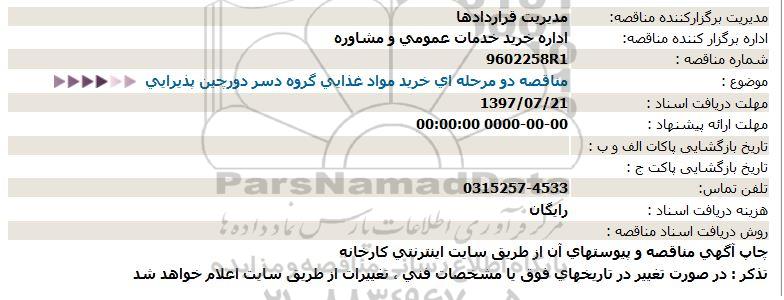 موضوع : مناقصه دو مرحله ای خرید مواد غذایی گروه دسر دورچین پذیرایی