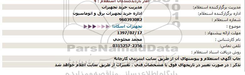 استعلام تجهیزات اسکادا, استعلام, استعلام تجهیزات اسکادا