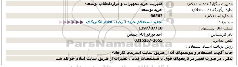 موضوع : تجدید استعلام خرید 2 ردیف اقلام الکتریکی