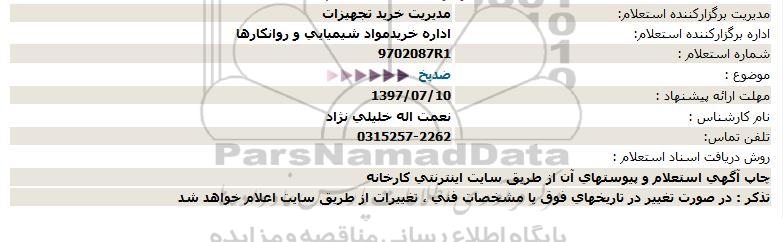 اداره برگزارکننده استعلام: اداره خریدمواد شیمیایی و روانکارها