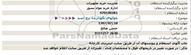 اداره برگزارکننده استعلام: اداره خرید مواد نسوز