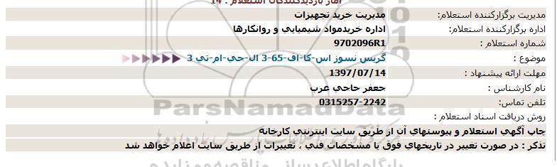 اداره برگزارکننده استعلام: اداره خریدمواد شیمیایی و روانکارها