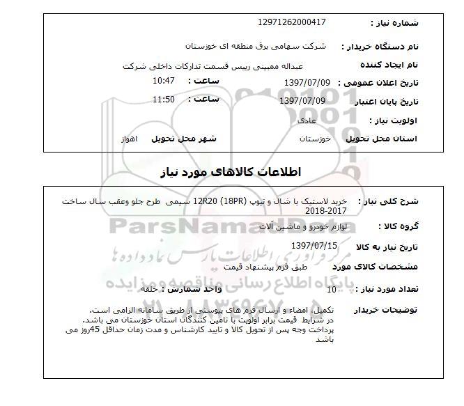 نام دستگاه خریدار: شرکت سهامی برق منطقه ای خوزستان