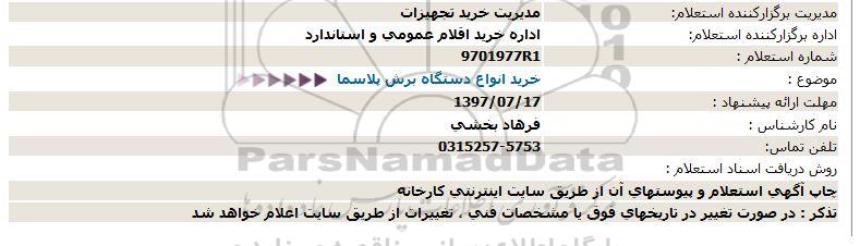 اداره برگزارکننده استعلام: اداره خريد اقلام عمومي و استاندارد