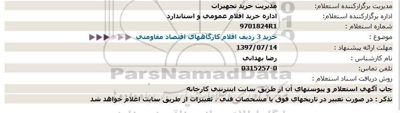 استعلام خرید 3 ردیف اقلام کارگاههای اقتصاد مقاومتی , استعلام , استعلام خرید 3 ردیف اقلام کارگاههای اقتصاد مقاومتی