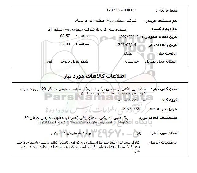 نام دستگاه خریدار : شرکت سهامی برق منطقه ای خوزستان