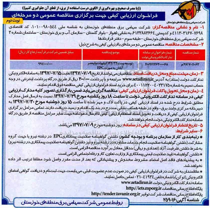 فراخوان توسعه پست 132.33 کیلو ولت - نوبت دوم , فراخوان , فراخوان توسعه پست 132.33 کیلو ولت- نوبت دوم