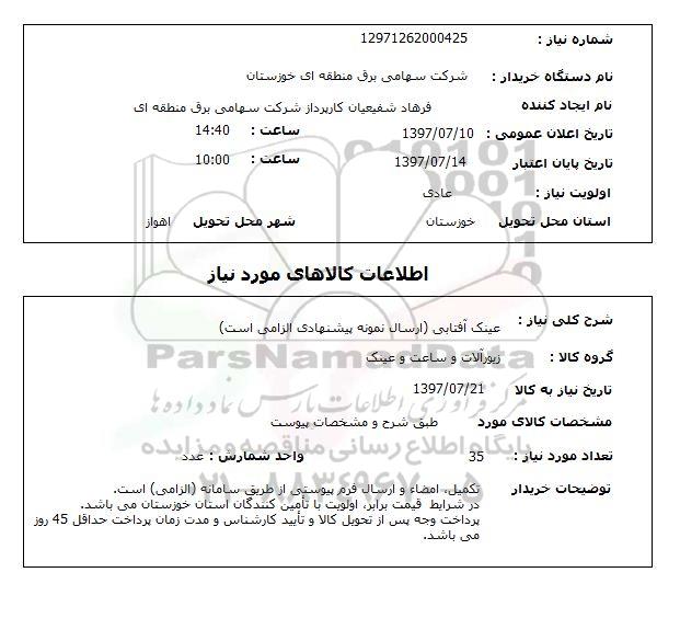 نام دستگاه خریدار: شرکت سهامی برق منطقه ای خوزستان