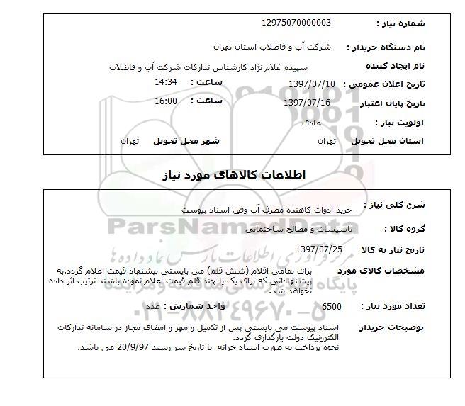 نام دستگاه خریدار: شرکت آب و فاضلاب استان تهران