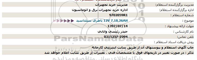 استعلام باطری سیلد اسید , استعلام, استعلام باطری سیلد اسید