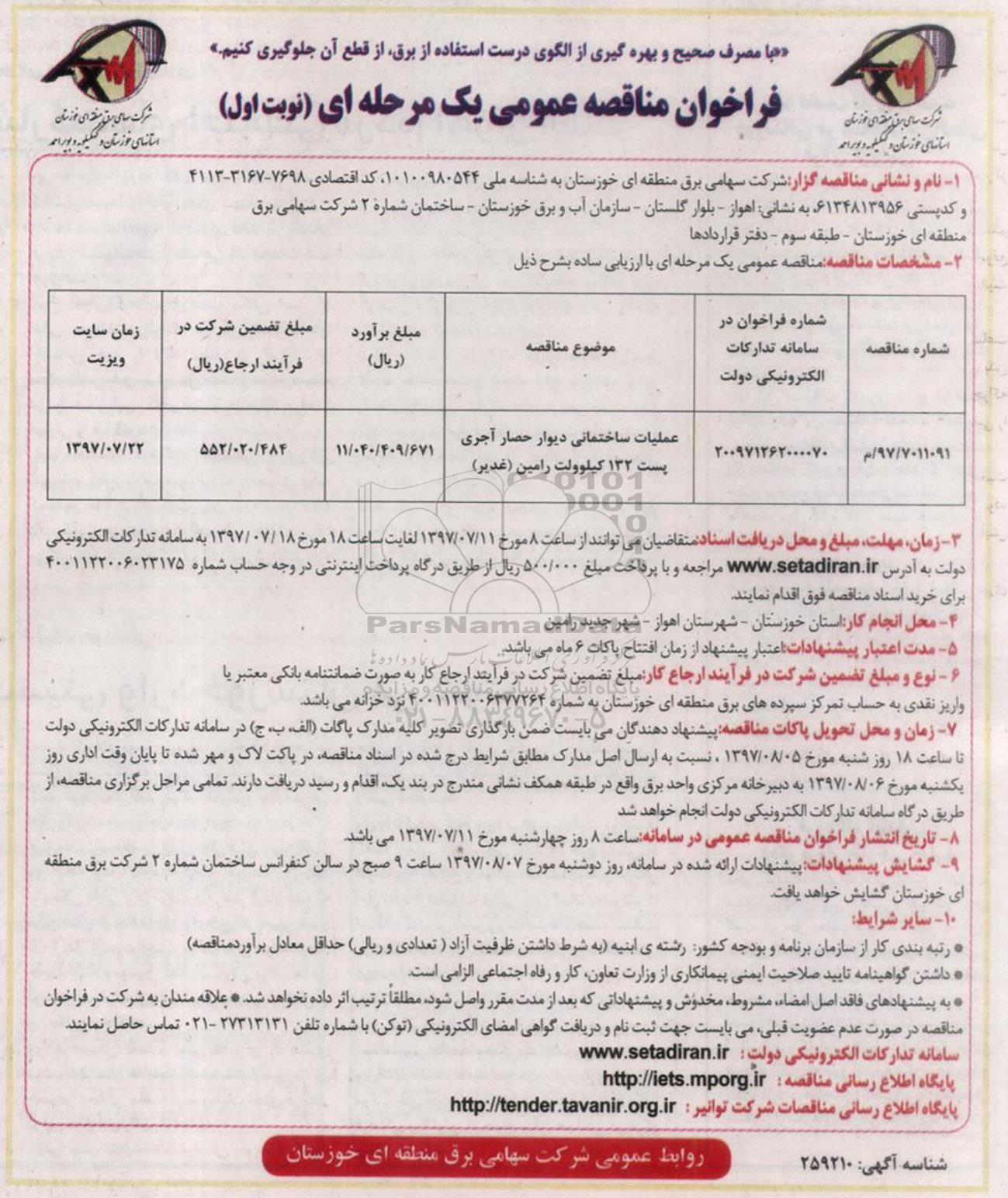 200971262000070 | عملیات ساختمانی دیوار حصار آجری پست 132 کیلوولت رامین (غدیر) |