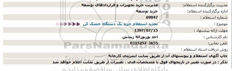 تجدید استعلام خرید یک دستگاه خشک کن , استعلام ، تجدید استعلام خرید یک دستگاه خشک کن