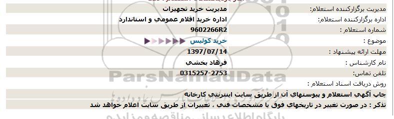 استعلام خرید کولیس , استعلام، استعلام خرید کولیس