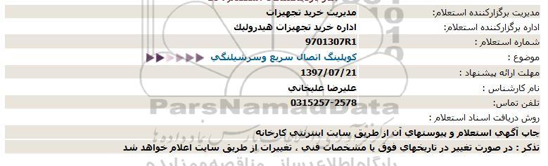 استعلام كوپلینگ اتصال سریع وسرشیلنگی , استعلام, استعلام كوپلینگ اتصال سریع وسرشیلنگی