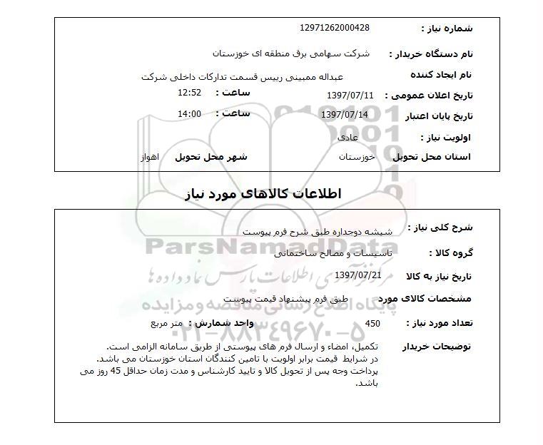 شماره نیاز          12971262000428