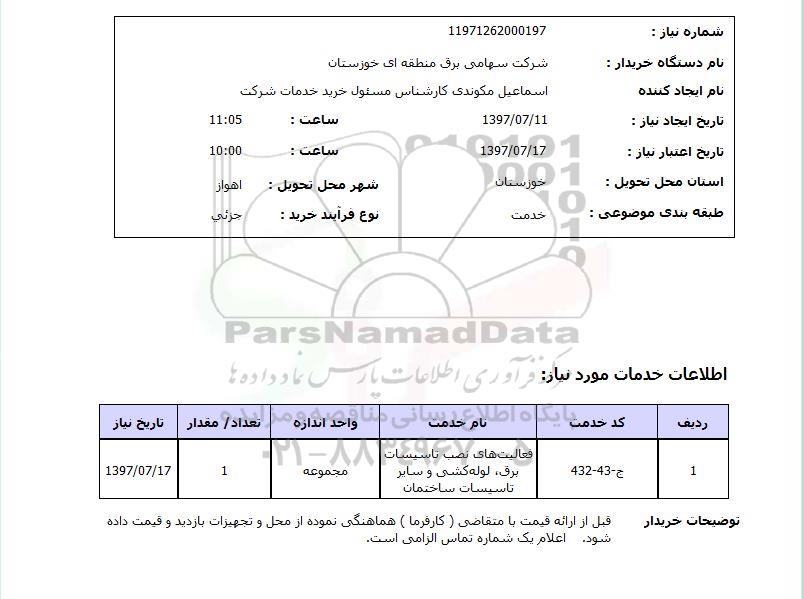 شماره نیاز 11971262000197