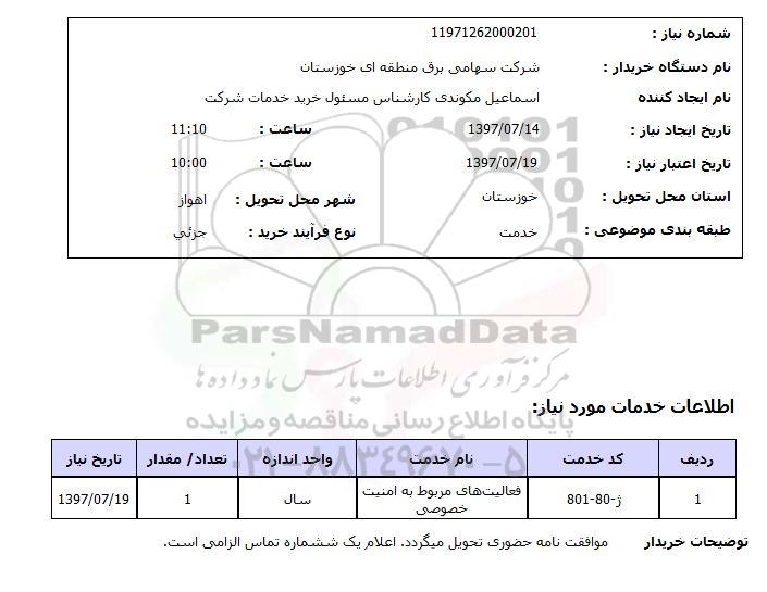 نام دستگاه خریدار شرکت سهامی برق منطقه ای خوزستان