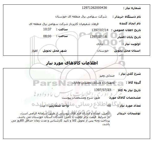 نام دستگاه خریدار: شرکت سهامی برق منطقه ای خوزستان
