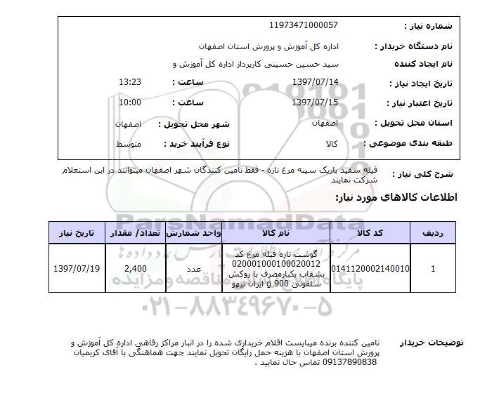 نام دستگاه خریدار اداره کل آموزش و پرورش استان اصفهان
