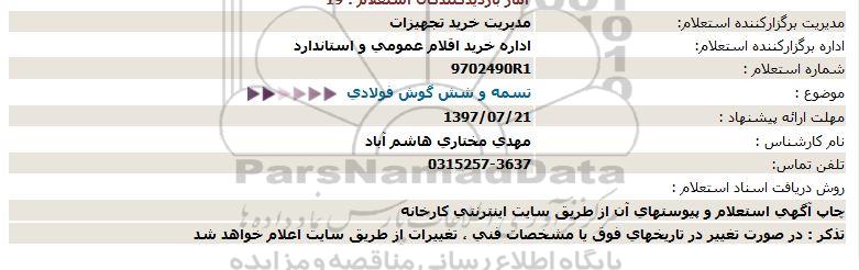 استعلام تسمه و شش گوش فولادی , استعلام, استعلام تسمه و شش گوش فولادی
