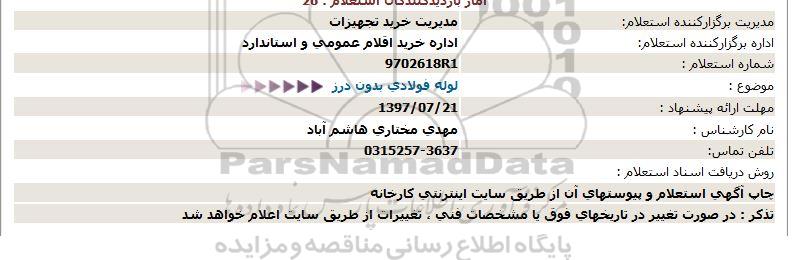 اداره برگزارکننده استعلام:اداره خرید اقلام عمومی و استاندارد