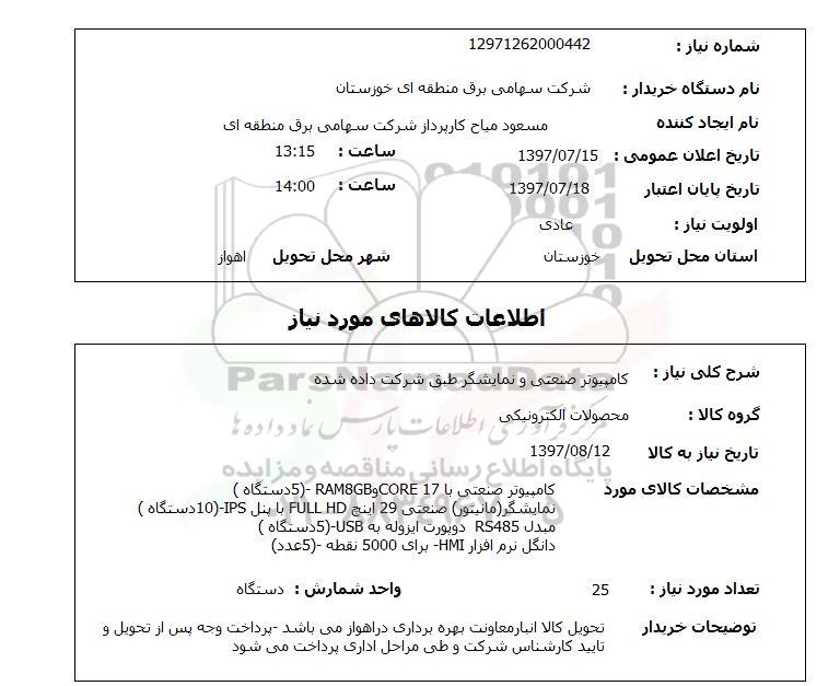 نام دستگاه خریدار شرکت سهامی برق منطقه ای خوزستان