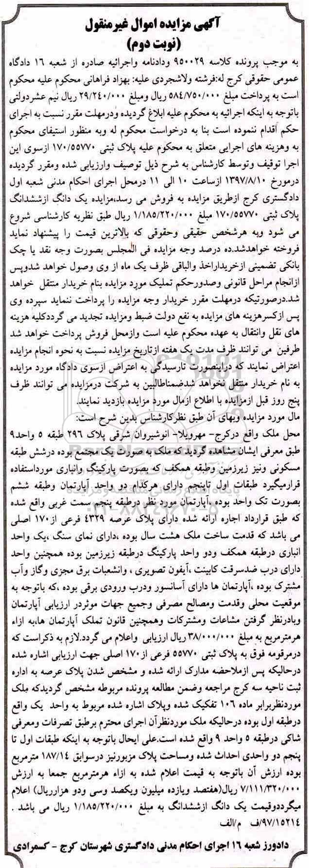 دادورز شعبه 16 اجرای احکام مدنی دادگستری شهرستان کرج