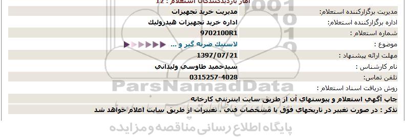 اداره برگزارکننده استعلام:     اداره خرید تجهیزات هیدرولیک