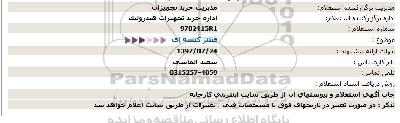 استعلام فیلتر کیسه ای , استعلام فیلتر کیسه ای