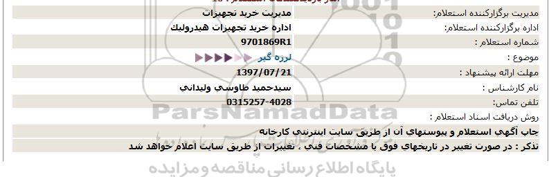 اداره برگزارکننده استعلام: اداره خرید تجهیزات هیدرولیک
