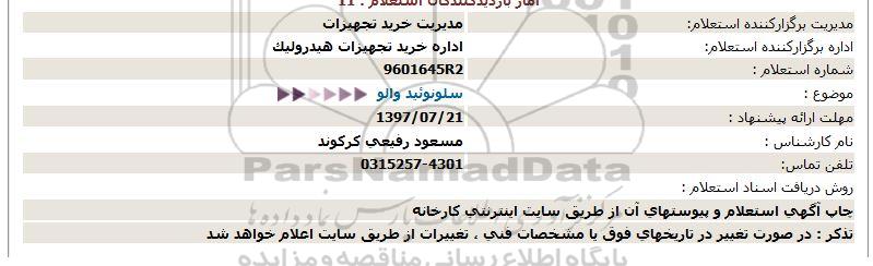 اداره برگزارکننده استعلام: اداره خرید تجهیزات هیدرولیک
