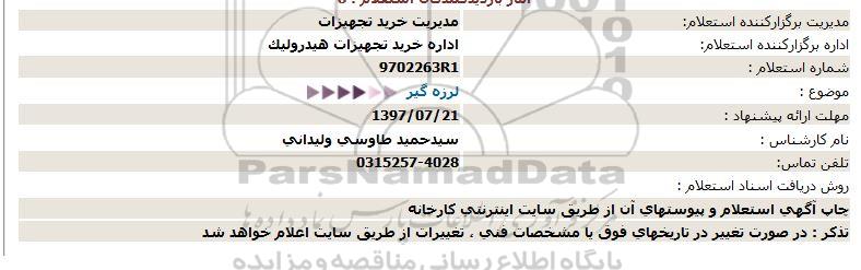 اداره برگزارکننده استعلام: اداره خرید تجهیزات هیدرولیک