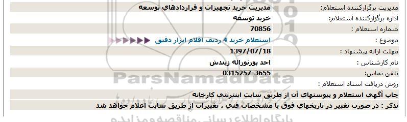 موضوع : استعلام خرید 4 ردیف اقلام ابزار دقیق