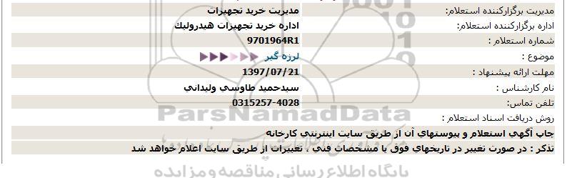 اداره برگزارکننده استعلام: اداره خرید تجهیزات هیدرولیک
