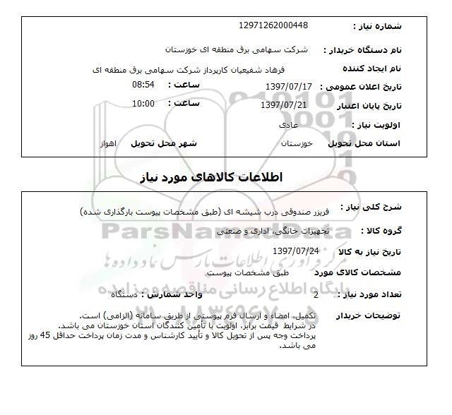 نام دستگاه خریدار: شرکت سهامی برق منطقه ای خوزستان