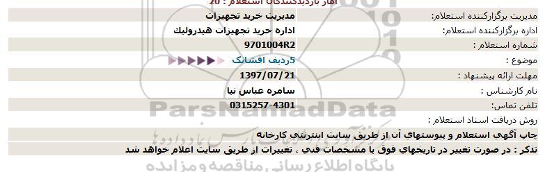 اداره برگزارکننده استعلام: اداره خرید تجهیزات هیدرولیک