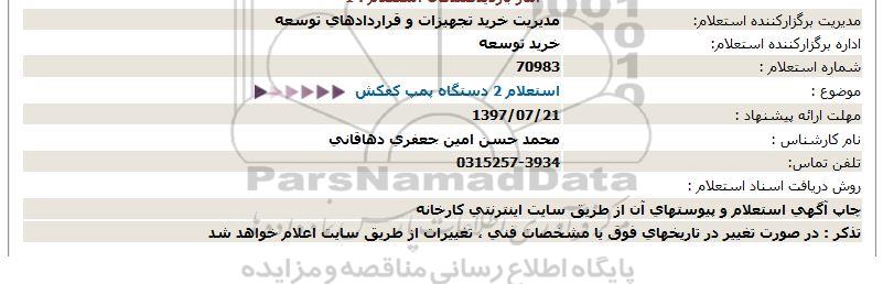 موضوع : استعلام 2 دستگماه پمپ کفکش