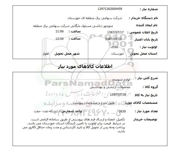 نام دستگاه خریدار : شرکت سهامی برق منطقه ای خوزستان