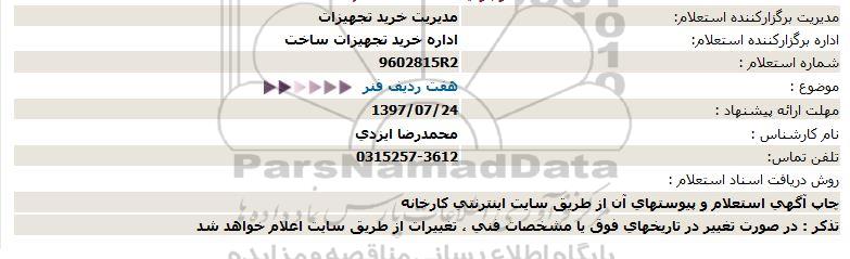 اداره برگزارکننده استعلام:     اداره خرید تجهیزات ساخت