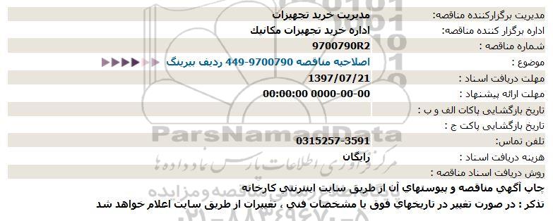 موضوع :    اصلاحیه مناقصه  449 رديف بيرينگ