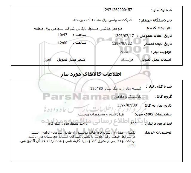 نام دستگاه خریدار: شرکت سهامی برق منطقه ای خوزستان