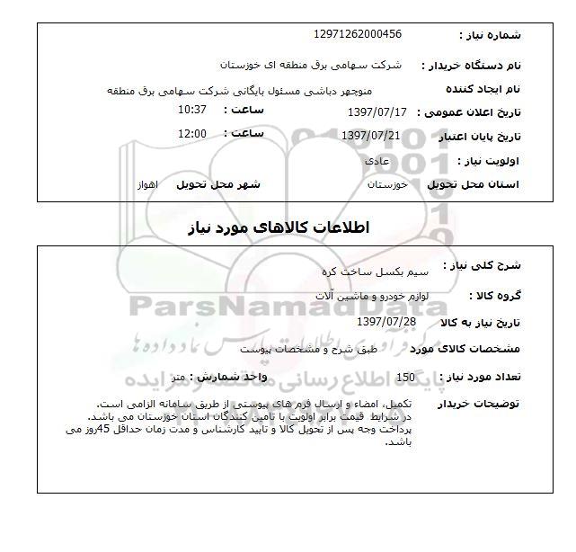 نام دستگاه خریدار :   شرکت سهامی برق منطقه ای خوزستان