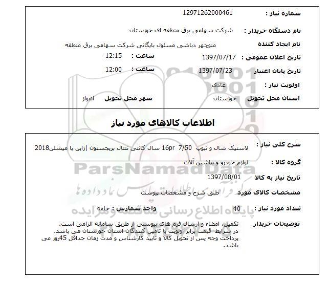 نام دستگاه خریدار : شرکت سهامی برق منطقه ای خوزستان