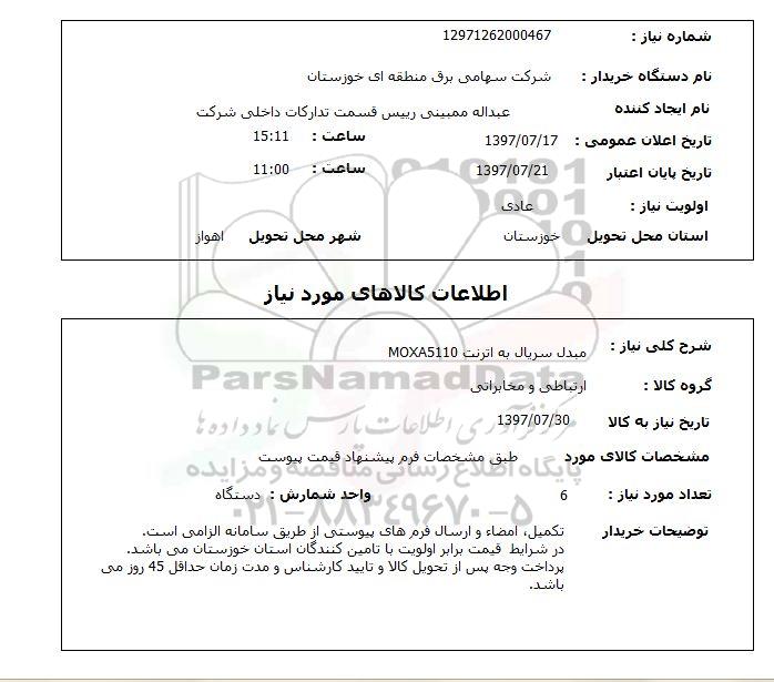 نام دستگاه خریدار:شرکت سهامی برق منطقه ای خوزستان